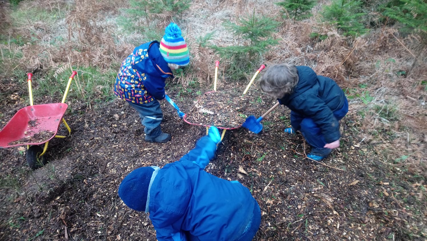 The ethos of Wildlings Kindergarten is that children are capable and interested, and the role of our staff is to nurture and help them learn, rather than dictate what should be taught. By using exciting and engaging play in the woods, combined with guidance, encouragement and suggestions, we enable young people to access the natural learning opportunities that are before them.
