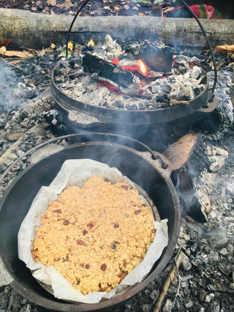 We’ve been enjoying mixing and cooking these at camp with the children this week. A real hit and the added bonus they don’t contain sugar! We cooked them in our Dutch oven over the campfire, but oven cooking will be just as good.
