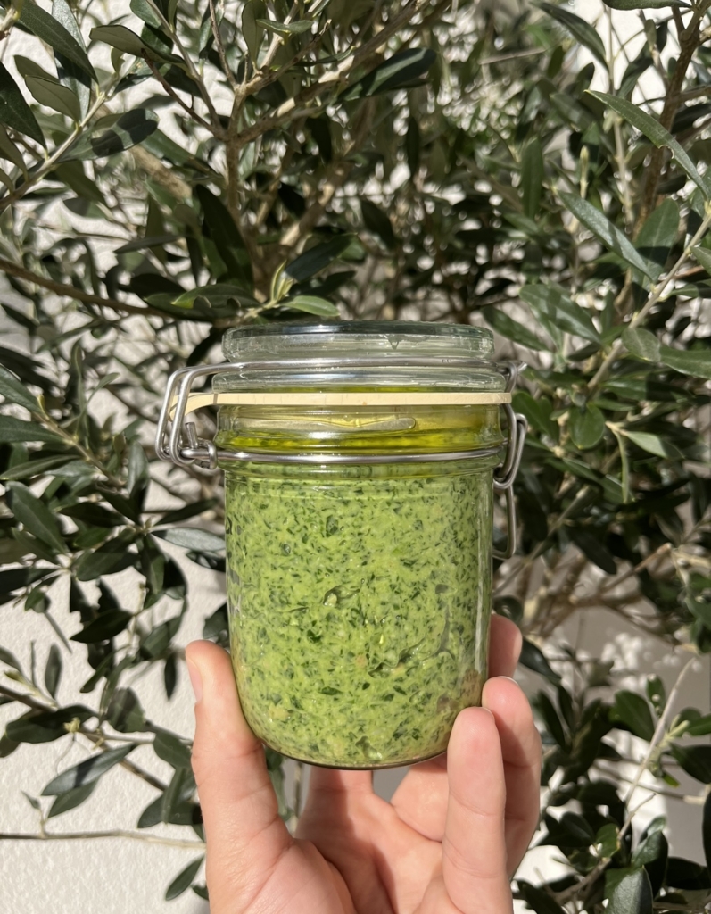 3. Add the remaining ingredients, slowly adding the olive oil until you reach your desired thickness.